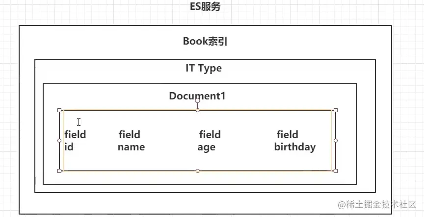 在ES服务中会创建多个index索引,每个索引下可以创建多个type,每个type下可以创建多个document类似于sql中的表,document下的field类似与sql的字段