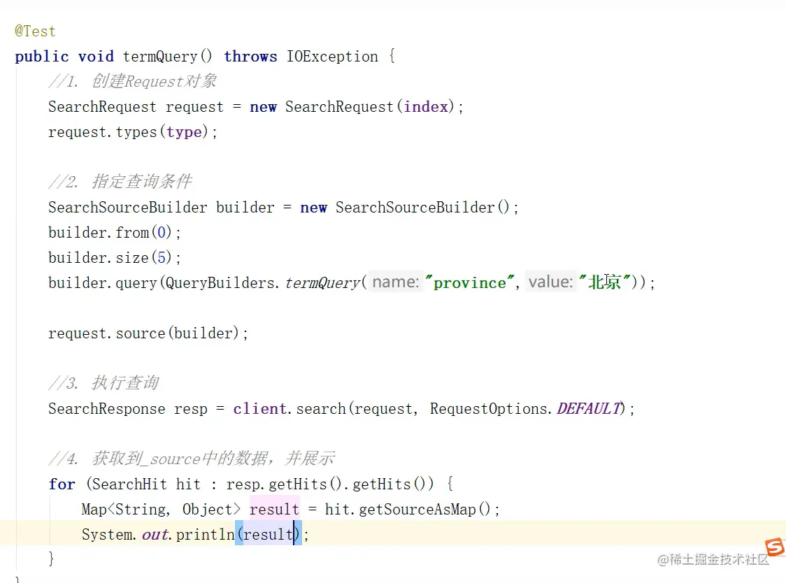 java方法使用term查询