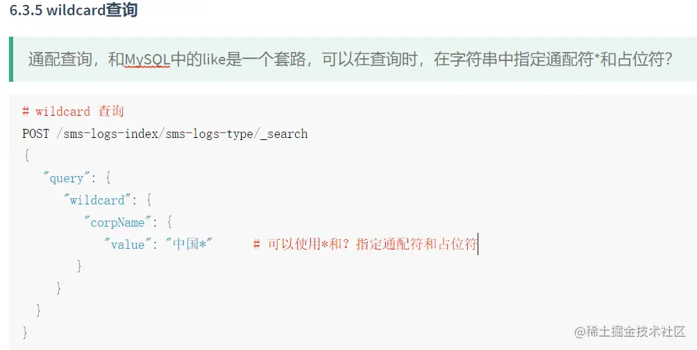 wildcard查询 类似于like 通过 通配符或者占位符查询实现