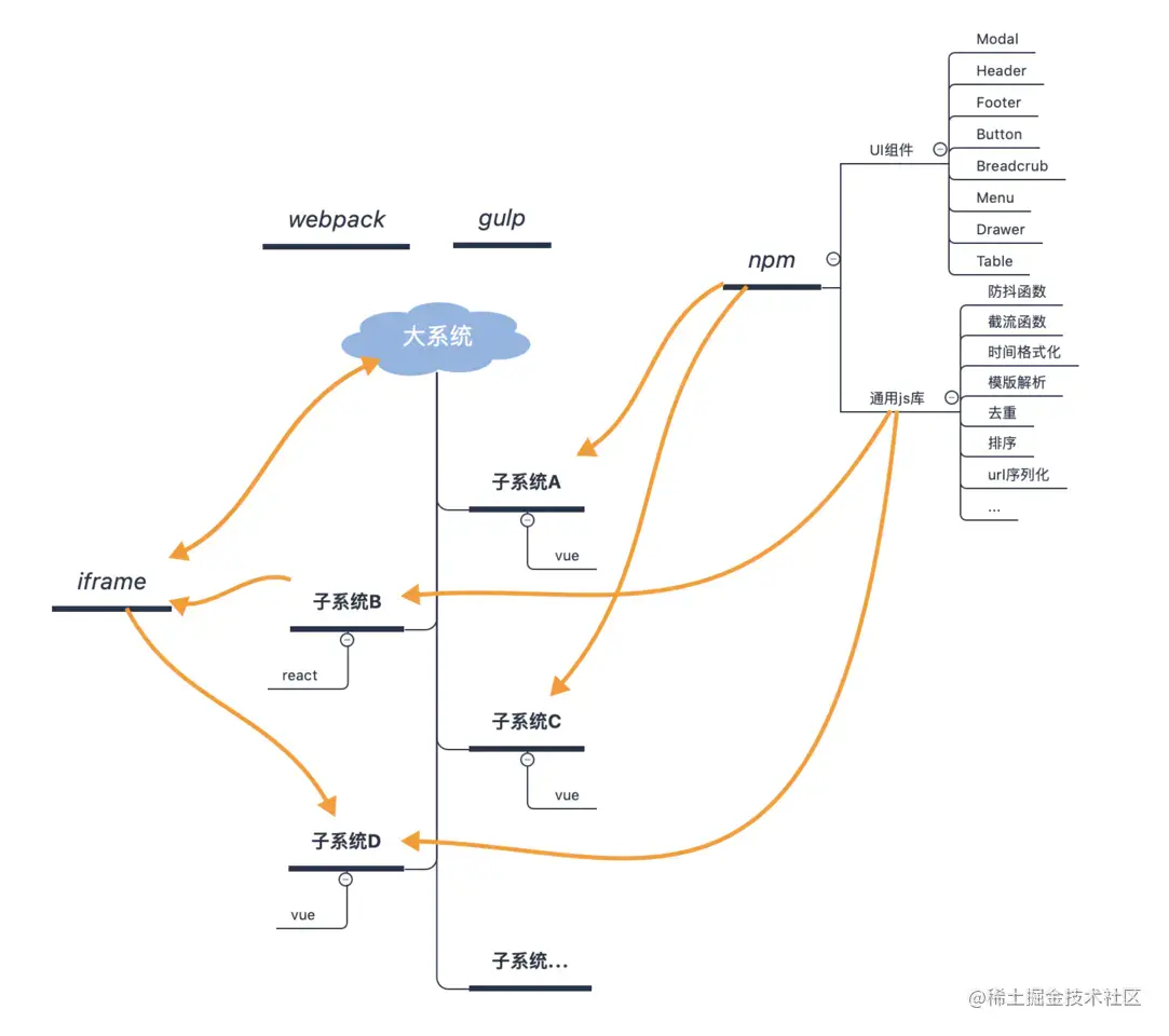 以下是笔者画的一些微前端应用的思维导图: