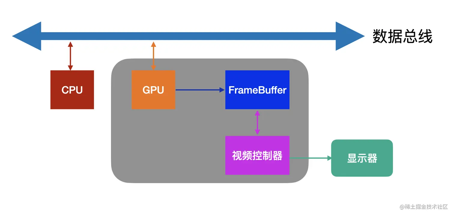 相对于CPU而言,GPU主要是接收CPU提交的纹理+顶点,经过一系列运算,最终混合并渲染,输出到屏幕上。