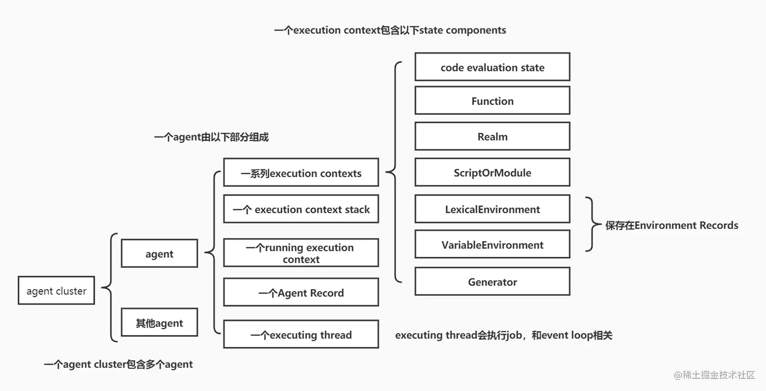 ES最初设计为一个脚本语言,现在作为一门通用的编程语言被广泛使用。对应运行时环境(runtime environment,比如node.js)除了要实现规范中定义的对象和能力,还要有特定环境的特性,比如输入输出、计时器等。