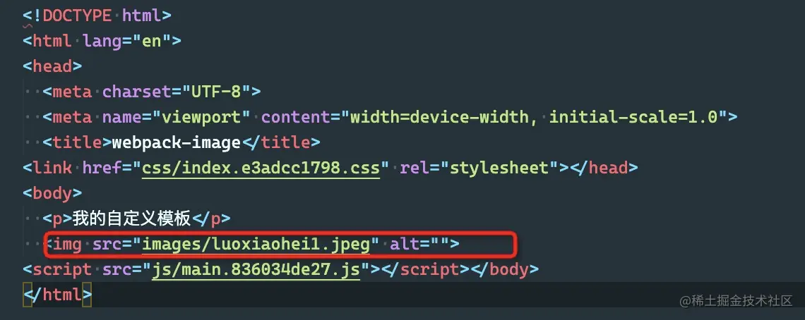 然后在上述的 src/index.html 模板中,引入一张图片: