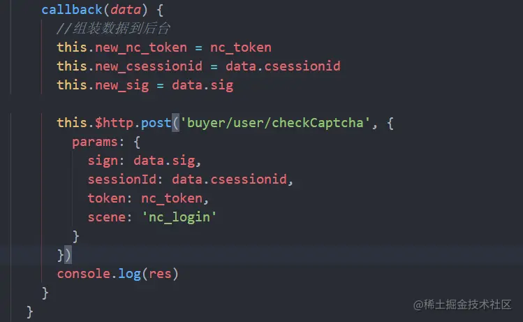 当滑动验证码块到最后,验证通过后在callback()内发送axios请求