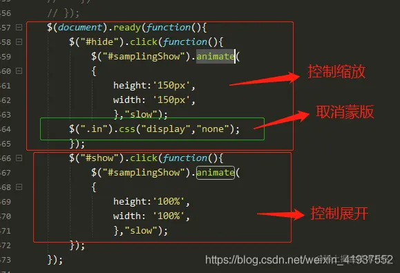 背景:一个比较老的后台系统,客户想操作父窗口的内容,同时查看子窗口,这就需要对页面进行缩小和放大,刚开始领导让我做一个假的隐藏然后缩放,经过测试此法不通,因为这个项目很庞大,框架较老,还有蒙版,使用隐藏hide()属性隐藏后,这个网页就不见了,在N个另一个页面加show()方法显示不出来,况且还有蒙版,显然不行,我决定用animate()动画操作。