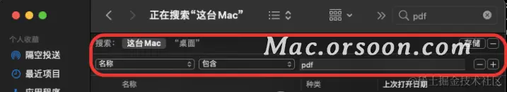 如果经常需要这个搜索,编辑好条件后,点击“存储”,可以把它添加到 Finder 左边栏中。