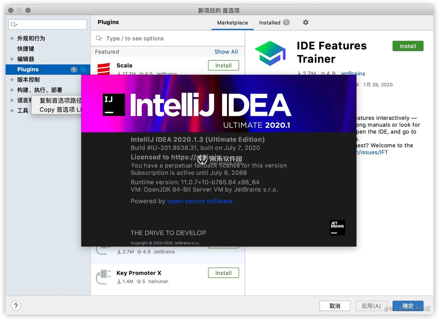 ⌘, 打开IDEA系统设置