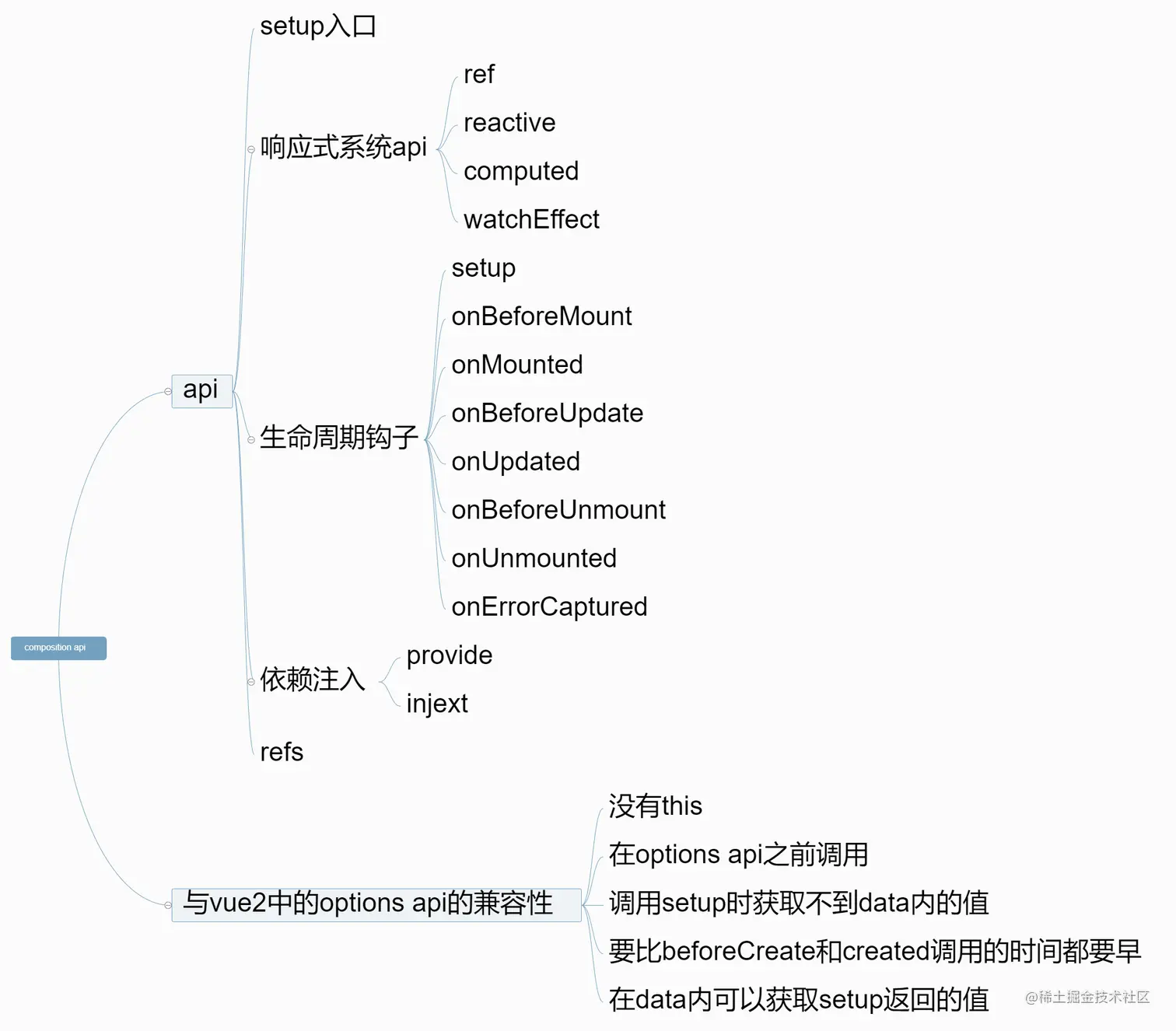 总结:1.如何初始化vue3项目 2.支持多个根节点 3.入口文件mian.js的改变4.更好的typescript支持 5.自动的tree-shaking 6.传送门teleport 7. composition api 8.setup 9.ref 9.reactive 10.readonly 11.computed 12.watch 13.watchEffect 14.生命周期钩子 15.依赖注入 16.refs 17.代码组织 18.逻辑复用