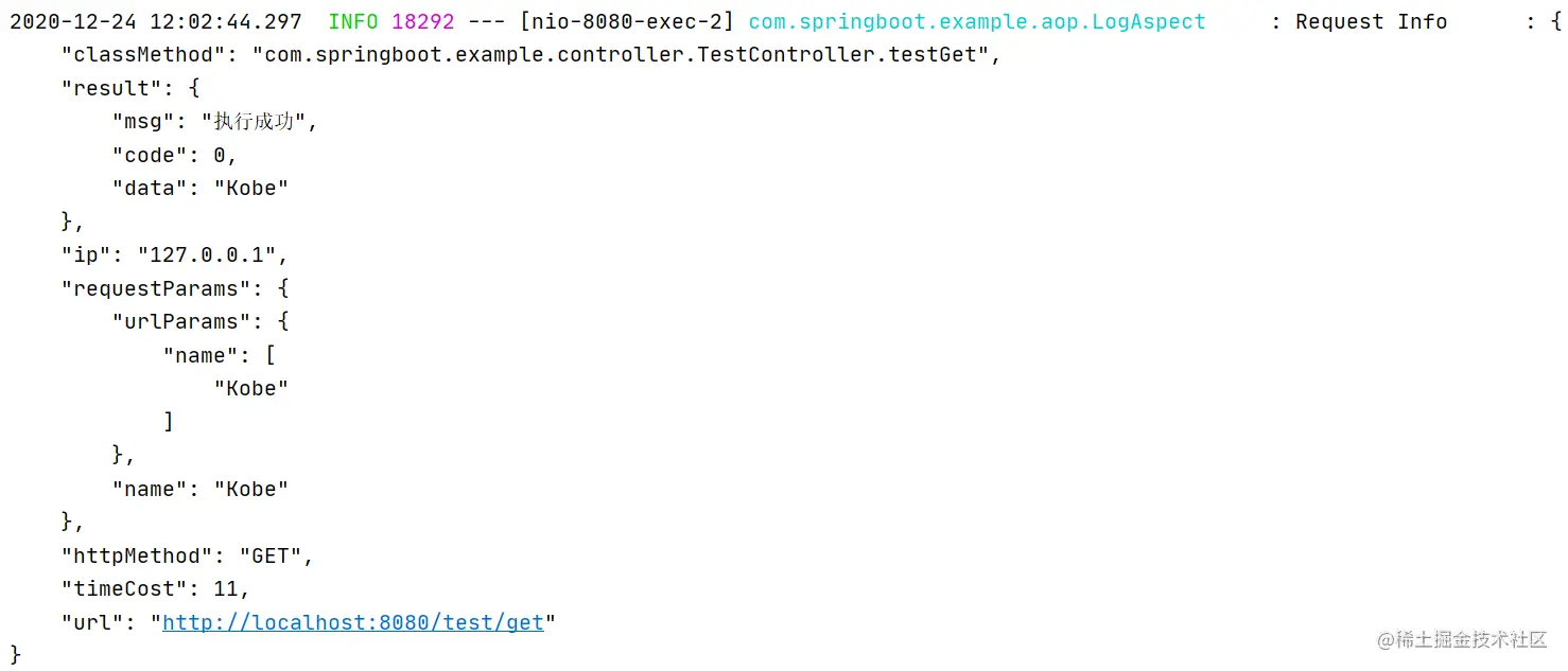 以上就是本次文章的全部内容了,本片文章只是简单的介绍了aop打印请求日志的基本使用,还可以入库记录重要的三方日志,请大家自行研究,本文章只是给大家参考而已!