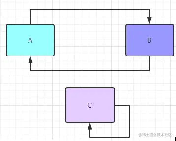 从字面上来理解就是A依赖B的同时B也依赖了A,就像上面这样,或者C依赖与自己本身。体现到代码层次就是这个样子