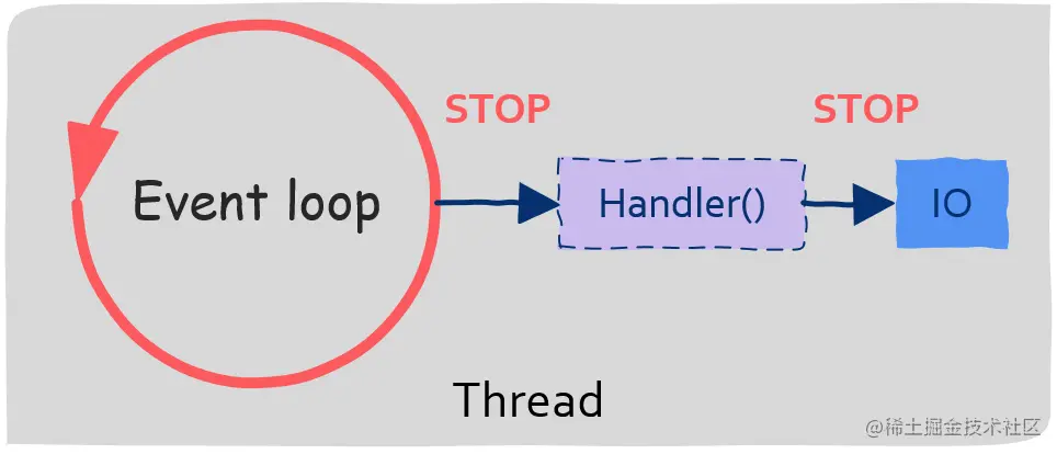 因此,在基于事件驱动编程时有一条注意事项,那就是不允许发起阻塞式IO。