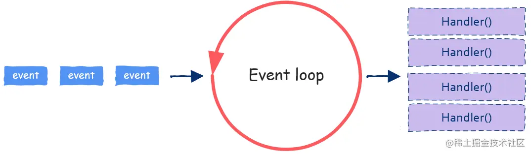 以上就是事件驱动编程的全部内容,是不是很简单!从上面的讨论可以看到,我们需要不断的接收event然后处理event,因此我们需要一个循环(用while或者for循环都可以),这个循环被称为Event loop。