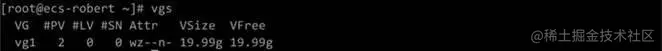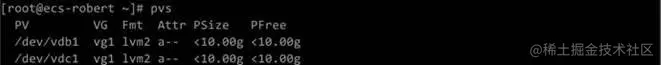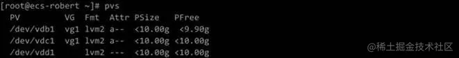 (4)通过vgcreate vg1 /dev/vdb1 /dev/vdc1命令创建卷组
