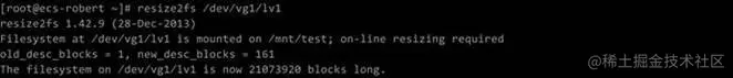对于ext4文件系统,命令为:resize2fs /dev/vg1/lv1