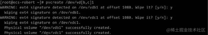 pvcreate /dev/vdb1 /dev/vdc1 或者 pvcreate /dev/vd[b,c]1(通配符)