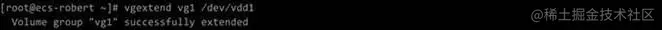 (1)扩充卷组:vgextend vg1 /dev/vdd1