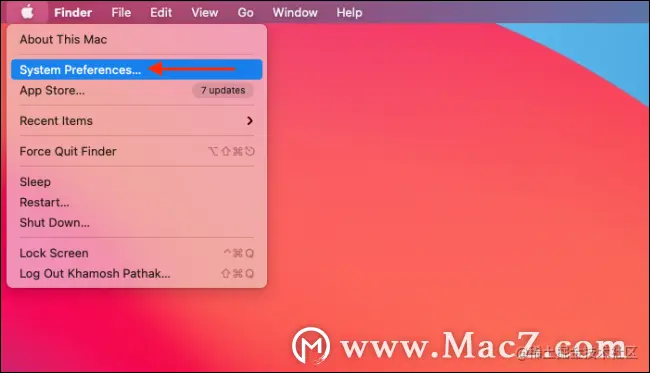 单击左上角的“ Apple”图标,然后选择“系统偏好设置”选项。