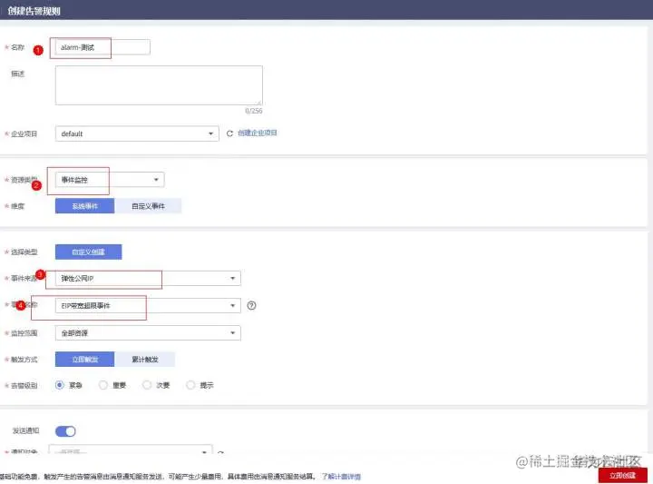 前提条件:已配置CES事件监控-带宽超限监控告警,当实际带宽超限,会产生告警,系统会自动进行通知。
