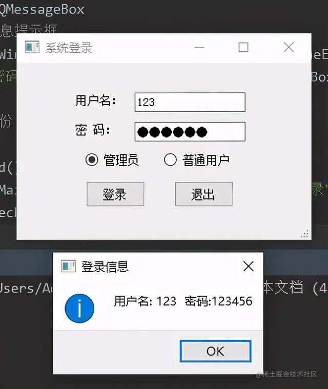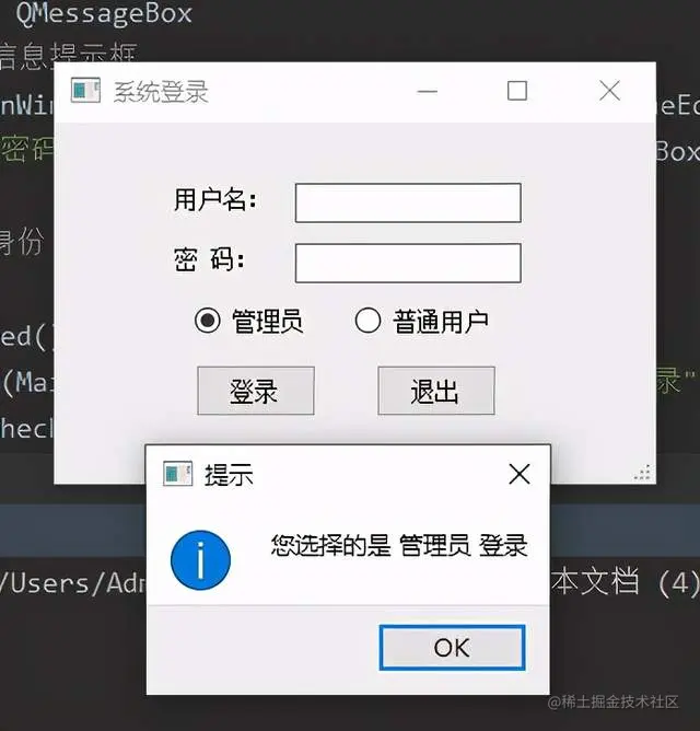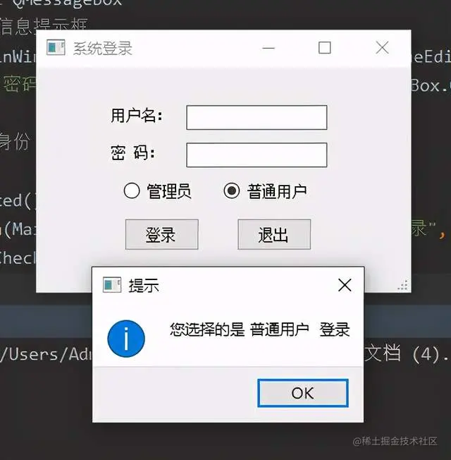 elif self.radioButton_2.isChecked(): # 判断是否为普通用户登录