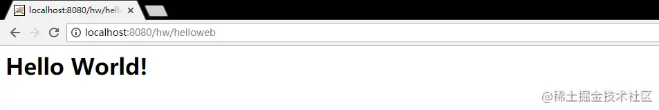 在项目正确发布到服务器上之后,用户即可通过浏览器访问该项目中的资源。注意 url 的格式正确,tomcat 的端口为 8080。http://localhost:8080/hw/helloweb,页面结果