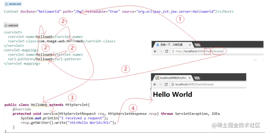 <url-pattern>/helloweb</url-pattern><!-- 给浏览器看的,对外访问路径 -->