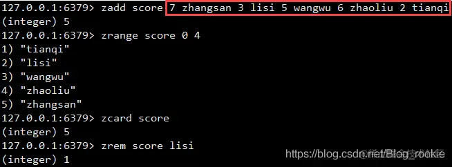 zadd需要将Float或者Double类型分数值参数,放置在值参数之前
