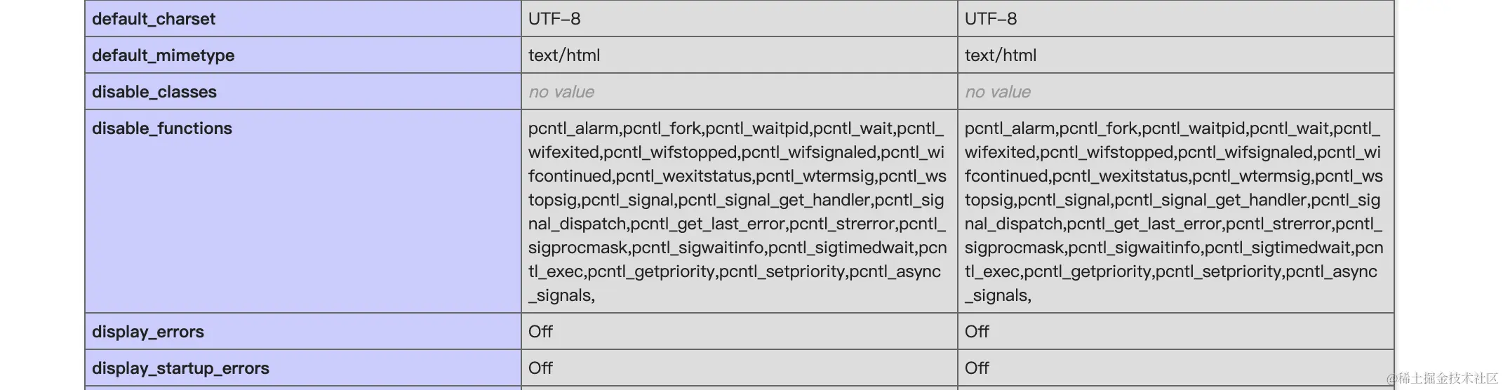 这是本文的重点,disable_functions顾名思义函数禁用,以笔者的kali环境为例,默认就禁用了如下函数: