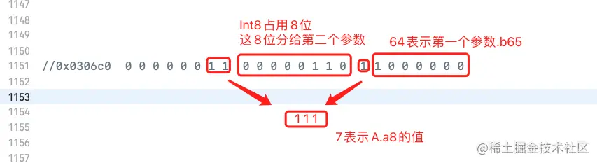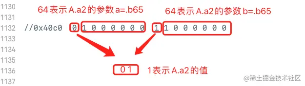 这时A.a3的参数a占用了7个二进制位,参数b同样占用了7个二进制位,那么这两个字节分别可以提供1个二进制位给A拿来存储case