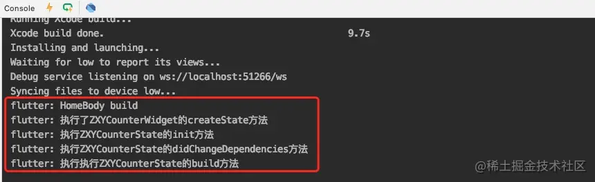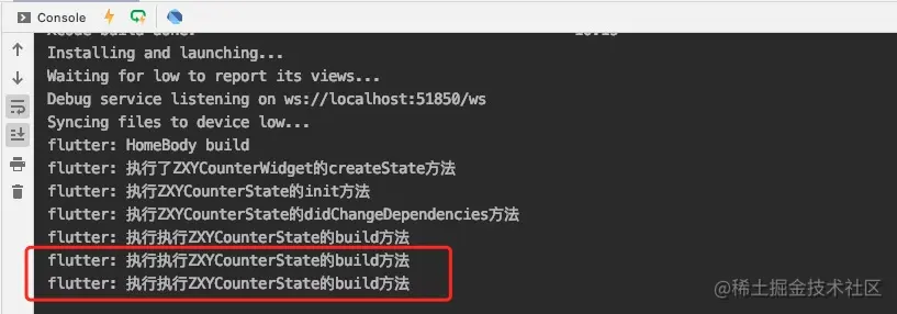 print("执行了ZXYCounterWidget的createState方法");