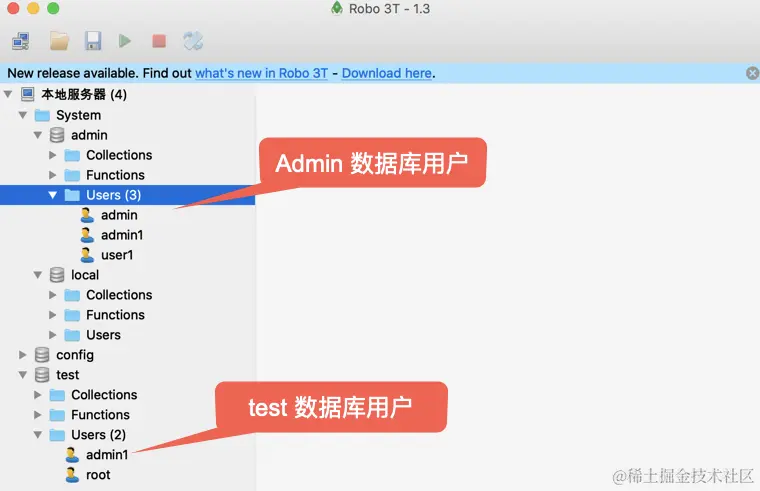连接主库,使用 db.auth('admin', 'admin')后可查看数据库