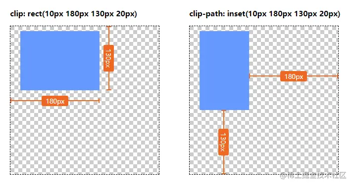 其中,clip-path: inset()这个矩形属性,和之前的 clip 属性是近亲,但是值的显示却有区别。(之前的 clip 属性总是让我觉得很不科学,个人认为,新的属性的值比较符合常规CSS的属性设定)。