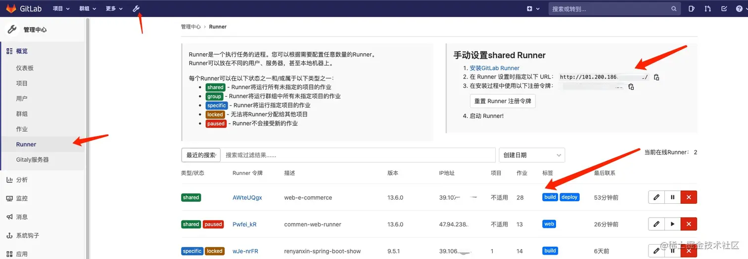 2、安装 gitlab-runner; 本方案使用的docker安装
