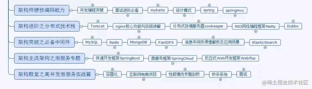 这里贴上一张进阶学习Xmind图,图中将这些能力具体到学习哪些技术分项,图中都有所罗列,供大家查漏补缺。
