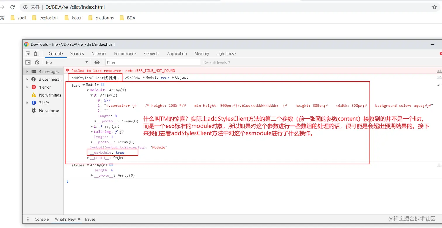 终于破案了,实际上是因为我复盘的时候,安装的style-loader、vue-style-loader、css-loader没有指定版本,默认安装了最新的依赖,css-loader、style-loader都把配置项的esModule默认值设为了true,而vue-style-loader最后一次更新已经是快三年前了,这期间的改动没有同步,所以vue-style-loader是不处理esModule的,所以这个问题的解决方法就出来了,只需要把css-loader的options添加上esModule:false就能够解决问题。