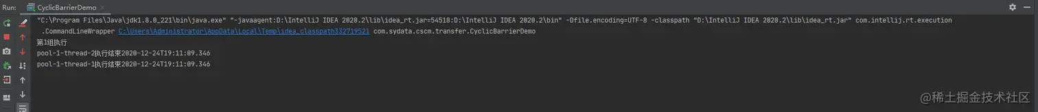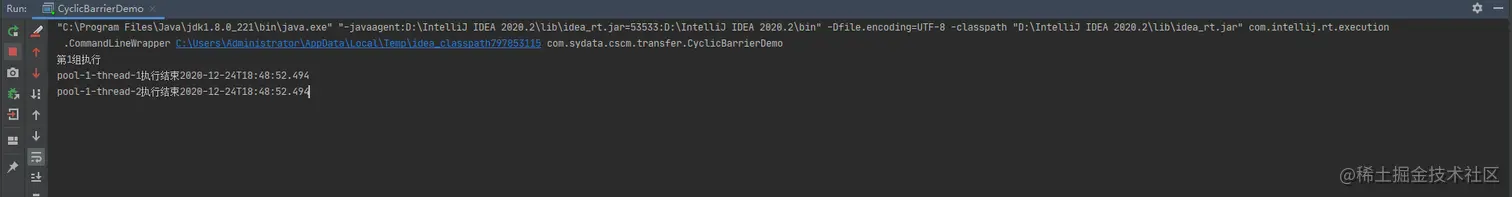 private static CyclicBarrier cyclicBarrier = new CyclicBarrier(2, () -> {