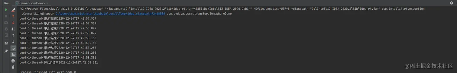 System.out.println(Thread.currentThread().getName() + "执行结束" + LocalDateTime.now());