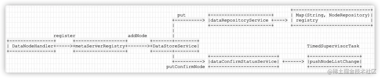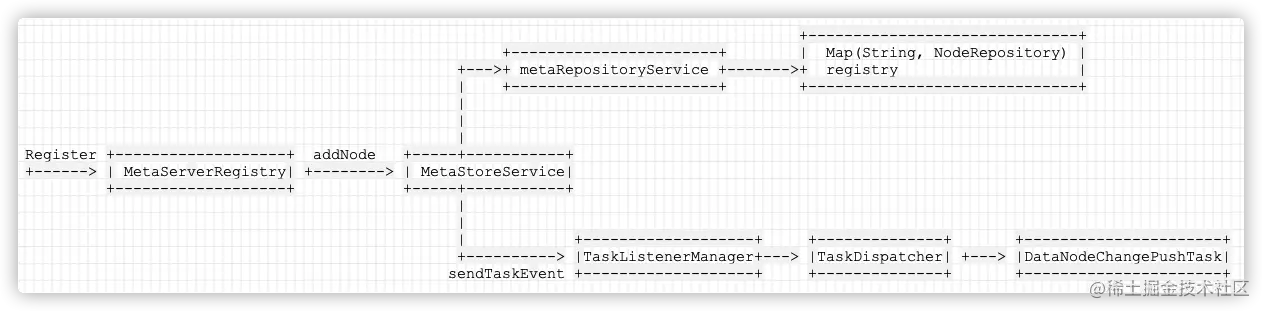 Node 然后由 StoreService 存储到 Repository 中,具体举例 MetaStoreService 实现为: