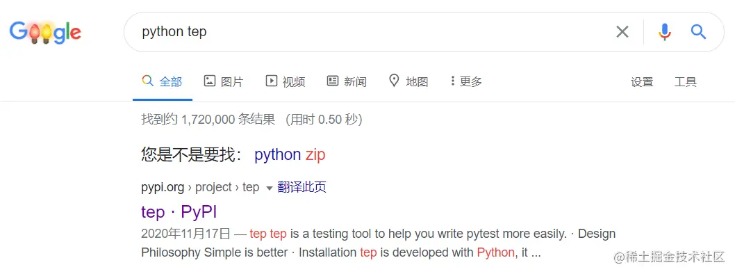 在Google中输入python tep: