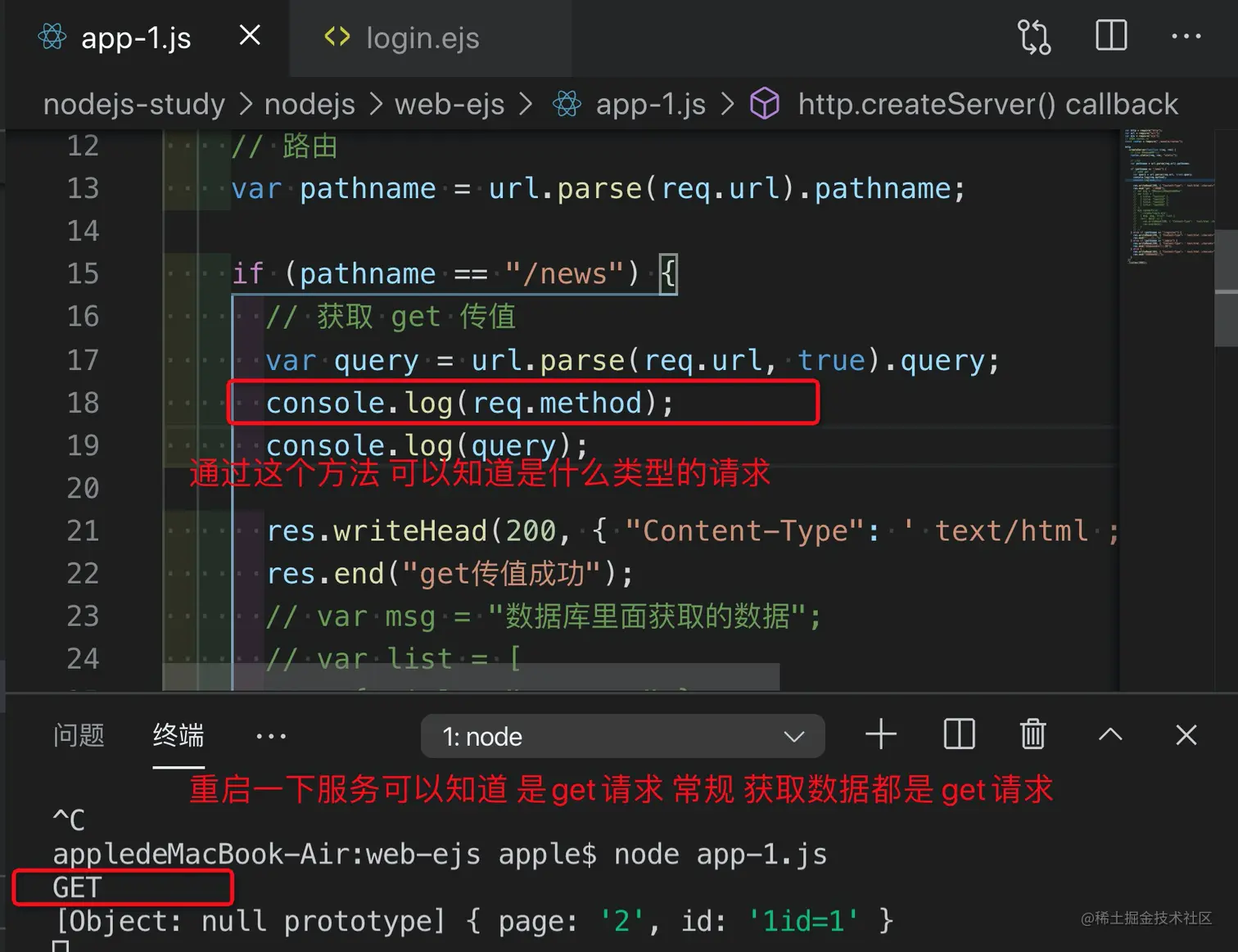 - 这时候 尝试 启动 node app-1.js 发现 可以 /login 不过 发生乱码