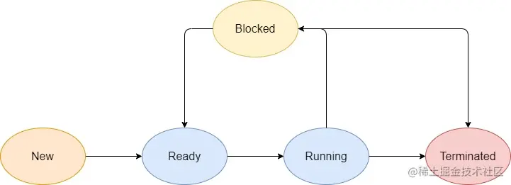 JVM线程的运行依赖于操作系统的线程,它对操作系统线程做了进一步封装.我们先看一下通用的操作系统线程的生命周期