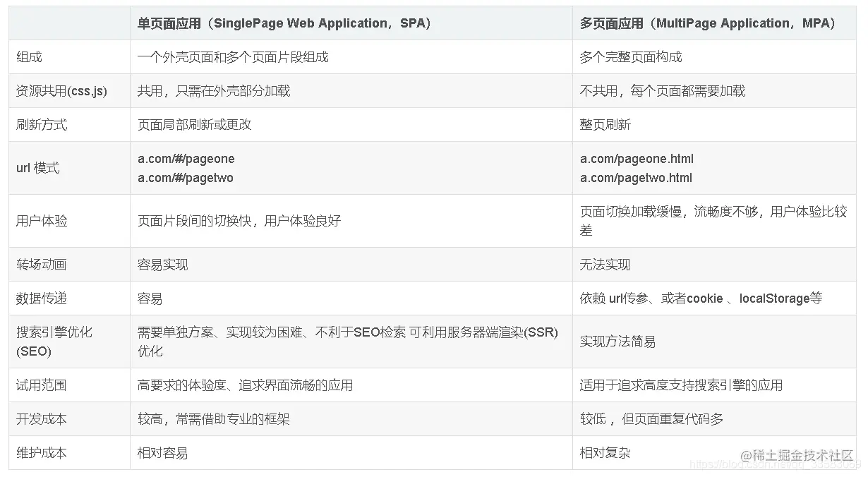 SPA的全称(single-page-application)是单页面应用,意思就是说,应用的html,css,js只在web应用初始化的时候加载,加载完毕之后,不会重新渲染整个页面了。