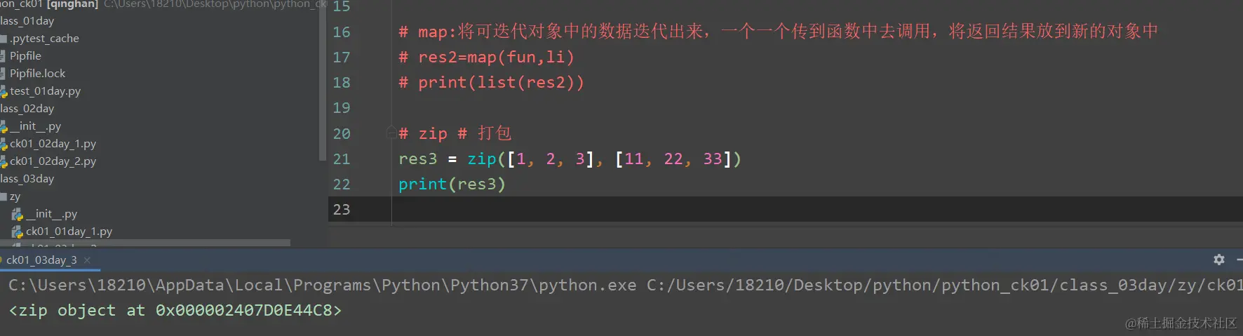 在 Python2 的时候,filter()、map()、zip()函数返回出来的直接是列表。Python3 做了个性能的优化,返回的是个迭代器,可以节约内存。