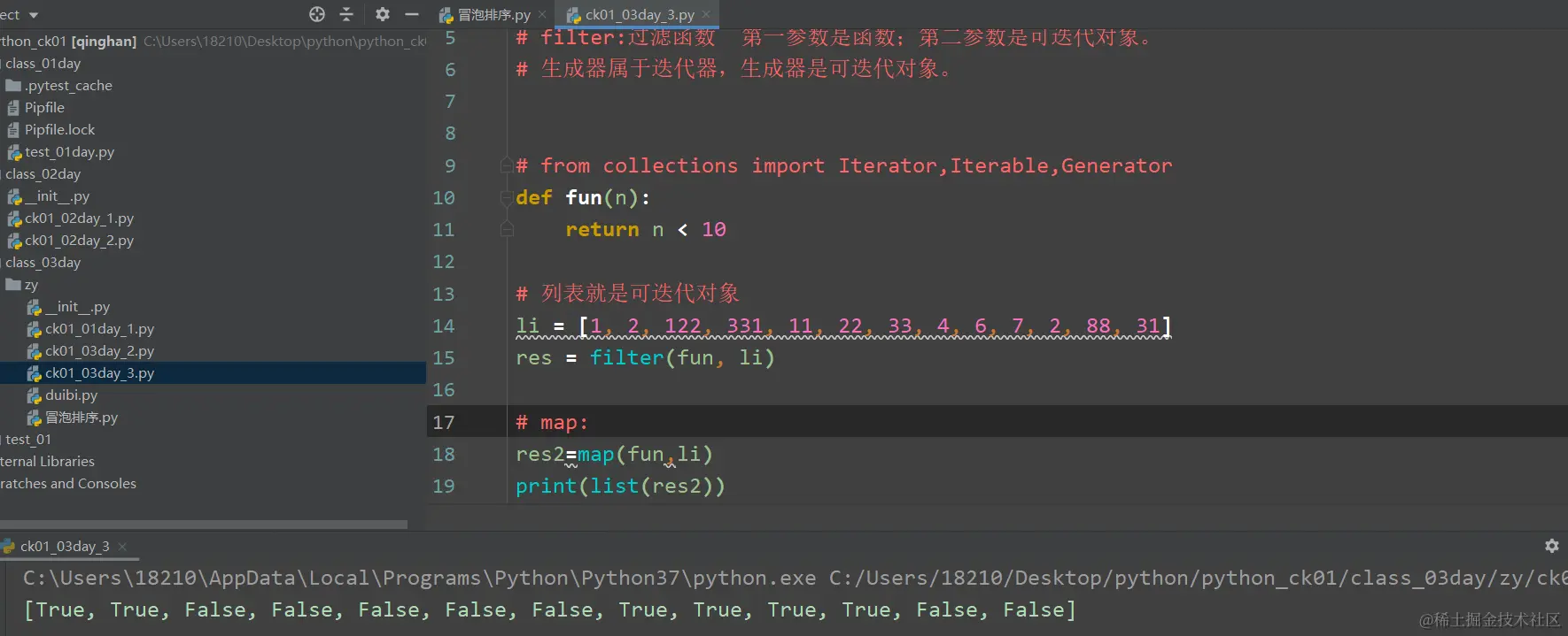 n<10返回的是个 True(当前传入的参数保留,添加到新的列表里面),n>10返回的是个 False(就把数据去掉不要了):