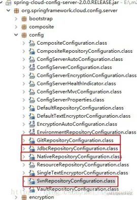 从Spring Cloud Config的源码(spring-cloud-config-server)中,可以看出目前支持本地存储、Git仓库存储、SVN仓库存储、数据库存储方式,其他存储方式可参考源码自行实现即可。