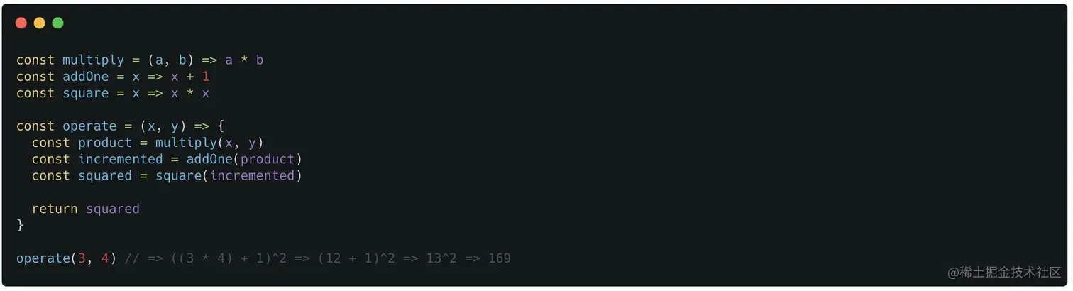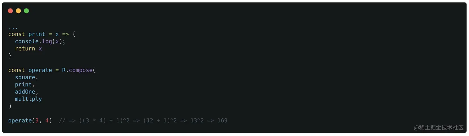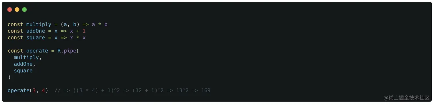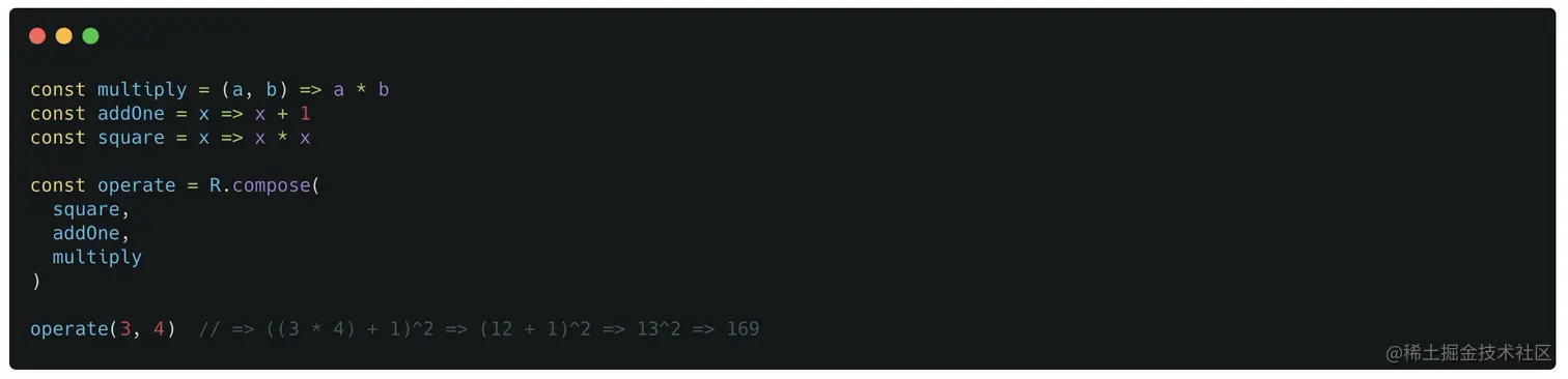 从右至左执行符合传统嵌套的阅读顺序,因为你是由外往内读代码的。square -> addOne -> multiply。我认为大可不必深究这个问题,可以根据你主观的判断来选择使用compose或者pipe。如果你知道他们之间的具体使用区别,欢迎在评论区留言。