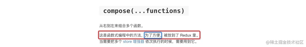 Redux就是原封不动的把人家函数库的compose方法放到了自己的API中,原因是: