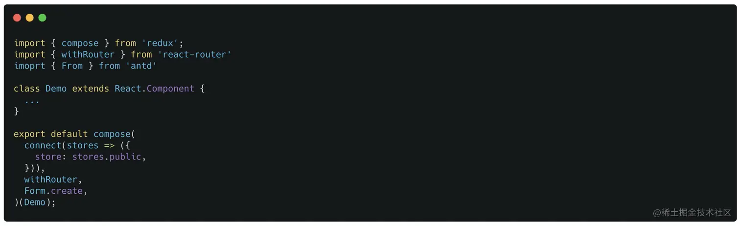 用过Redux状态管理的同学应该都知道,在Redux为数不多的6个API中,有一个compose。Redux中的compose一般用法如下。