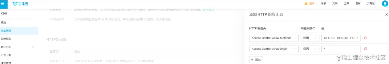 七牛云资源跨域问题解决方案 苍山雪洱海月 2020-12-25 1,563 阅读1分钟 需要配置响应请求头 ps:新建跨域规则没作用, 七牛存储空间默认允许跨域访问,会返回 Header Access-Control-Allow-Origin : *。