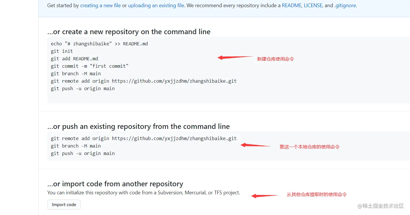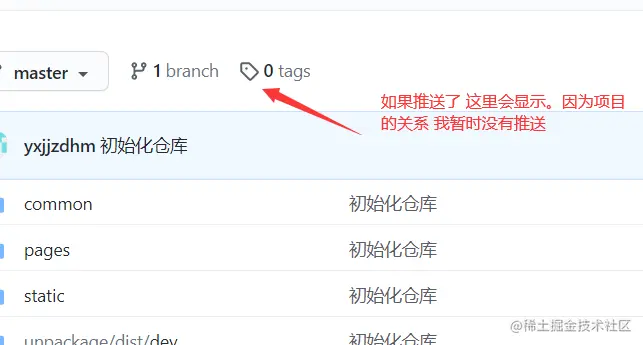 此时代码就上传至远程仓库了git init //初始化仓库 git add. //将未提交的文件提交至暂缓区 git commit -m "初始化仓库" //将分支提交到仓库中 git commit -m "提交分支" -m代表提交消息 git remote add origin 仓库地址.git // 关联远程仓库 git git push -u origin master //上传至远程仓库